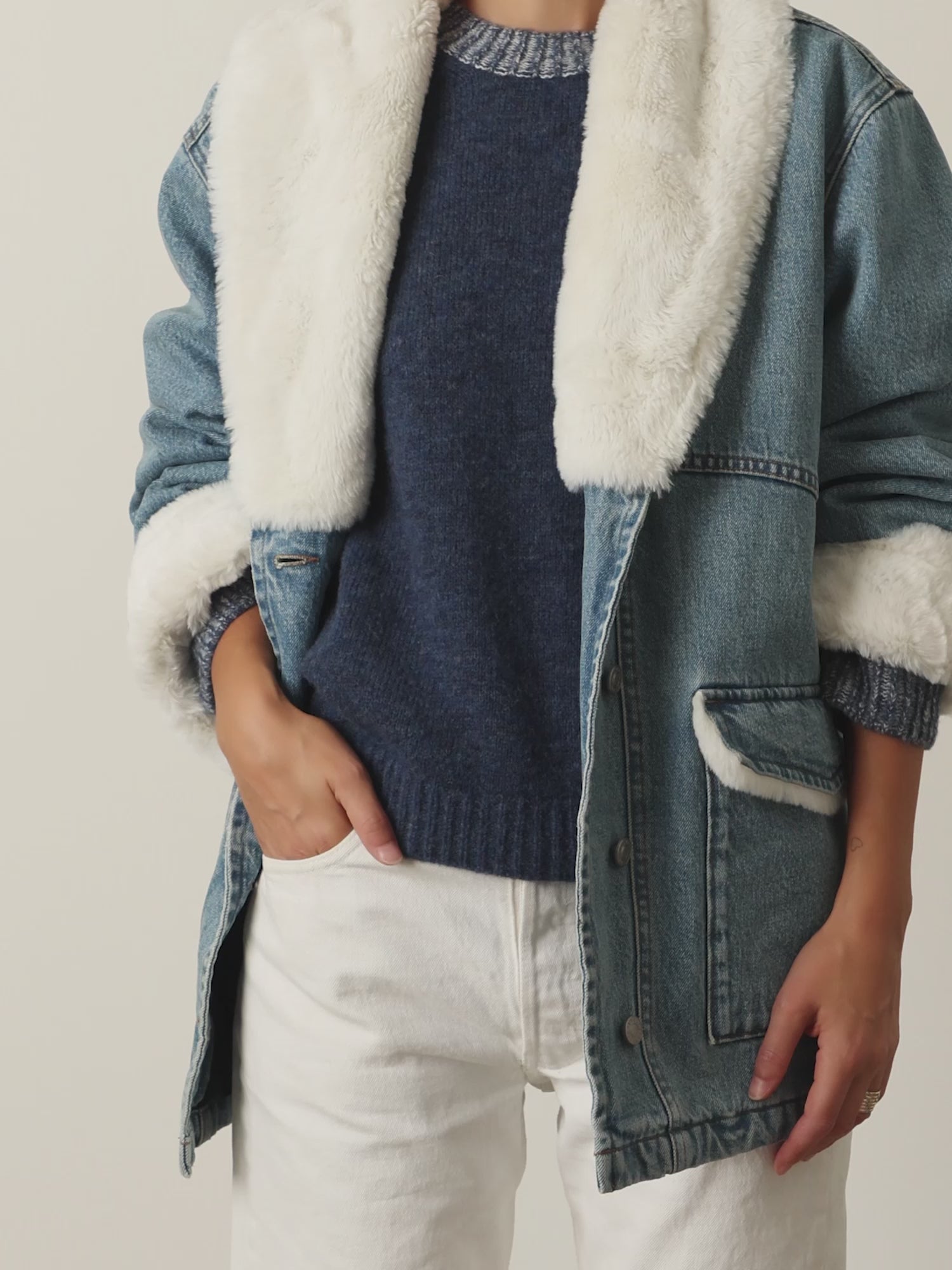 French allure meets California ease. Valentin is new this season in our soft knit baby alpaca blend for added texture and warmth. This cozy sweater features an embroidered heart, contrast marled ribbing at the neck and cuffs, and a solid ribbed hem for a polished finish.