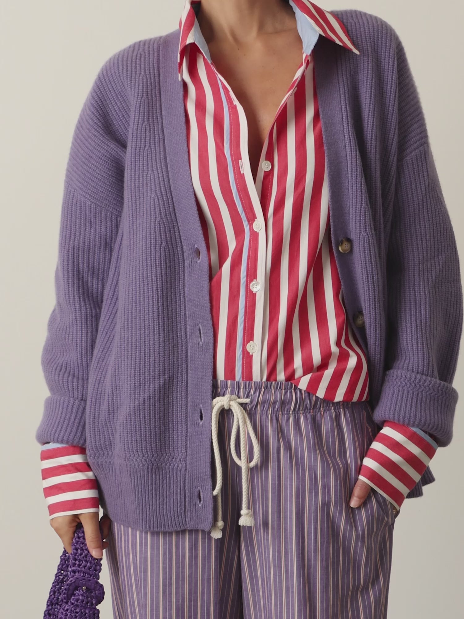 For over thirty years, Maria La Rosa has redefined Italian craftsmanship with its handmade creations inspired by Italian architecture, furnishings, artifacts, and nature. Blending tradition, contemporaneity, and sustainability, Maria La Rosa utilizes artisanal techniques in loom weaving, knitting, macramé, crochet, and embroidery to create one-of-a-kind pieces. The Cheyenne Mini Bucket Bag is handmade in a striped raffia viscose cotton blend with a cotton lining. This crocheted bucket bag features a knot shoulder strap and a leather drawstring self-tie closure.