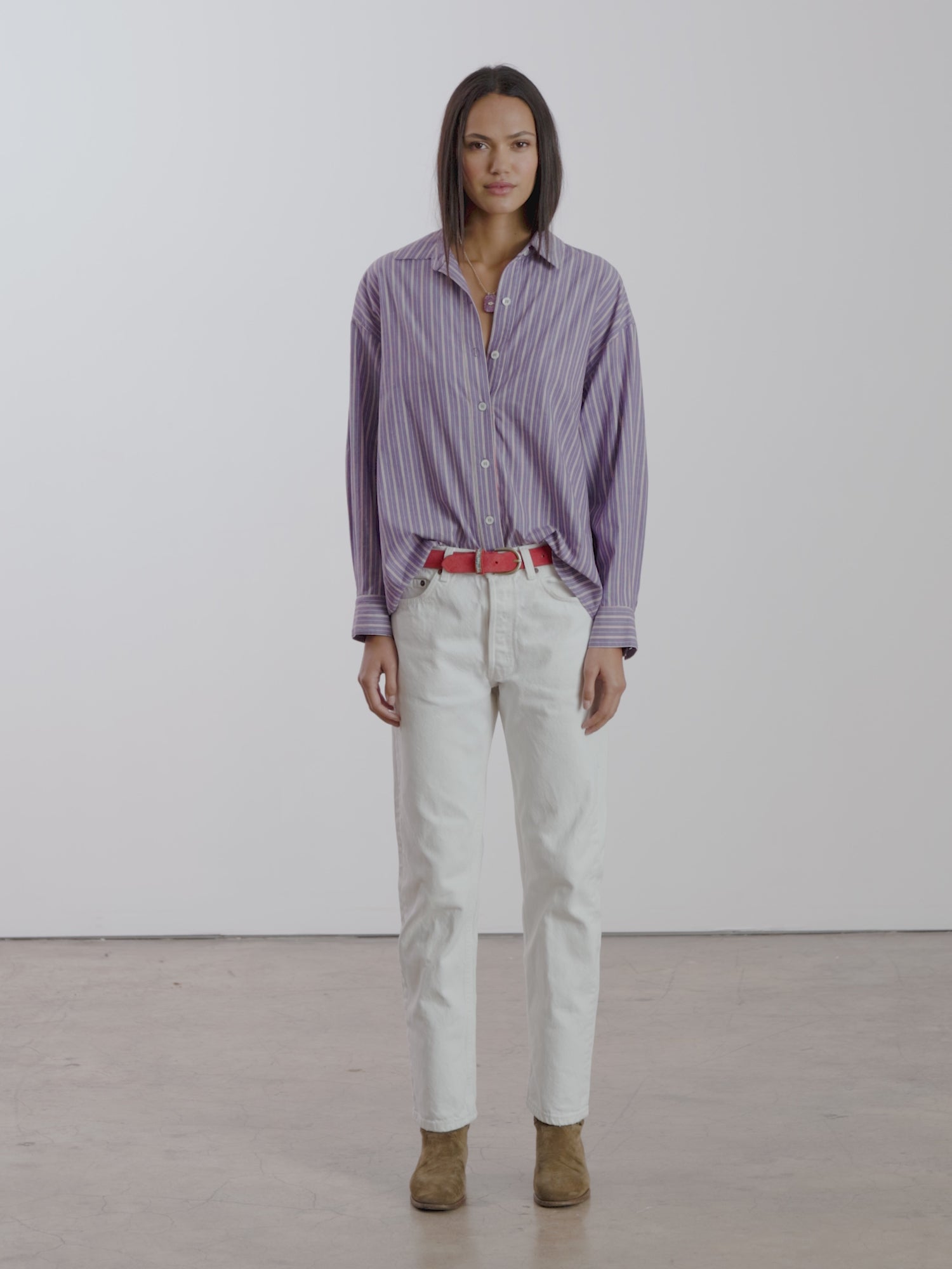 Earn your stripes. Hayven is an oversized, menswear-inspired button-down shirt made in our lightweight cotton stripe.